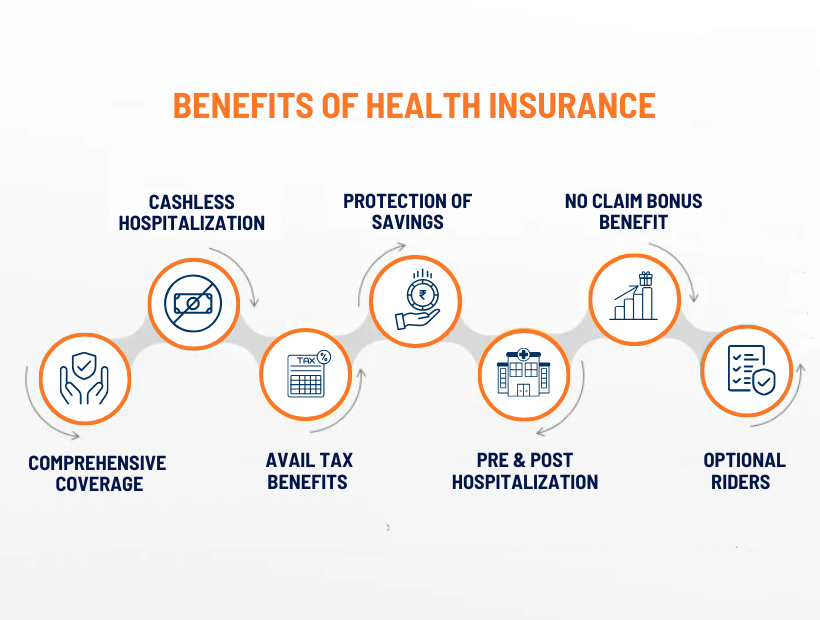 Health insurance is a financial contract where individuals or companies pay regular premiums to an insurance provider in exchange for coverage and financial protection against medical expenses. In the event of illnesses, injuries, or medical treatments, health insurance helps mitigate the financial burden & covers expenses related to hospitalization, doctor consultations, surgeries, prescription medications, and preventive care, among other healthcare services.